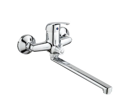 Смеситель для ванны Антей "Альфа", с длинным изливом 300мм, с керамическим поворотным дивертором в корпусе, картридж d40мм, цвет - хром.