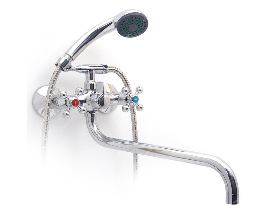 Смеситель изготовлен из металлического сплава. Переключатель потоков на корпусе смесителя. Держатель лейки на корпусе смесителя. Диаметр декоративных чашек 70 мм. Душевой гарнитур в комплекте. Межосевое расстояние (расстояние между выходом горячей и холодной трубы) 150 мм. Данное расстояние изменяется за счет входящих в комплект эксцентриков на 15 мм в большую или меньшую стороны. Цвет хром Количество режимов струи лейки: 1. Исполнение шланга: металл см. Длина шланга: 150. Комплектация: Смеситель, шланг, душевая лейка, держатель душевой лейки, эксцентрики, инструкция.