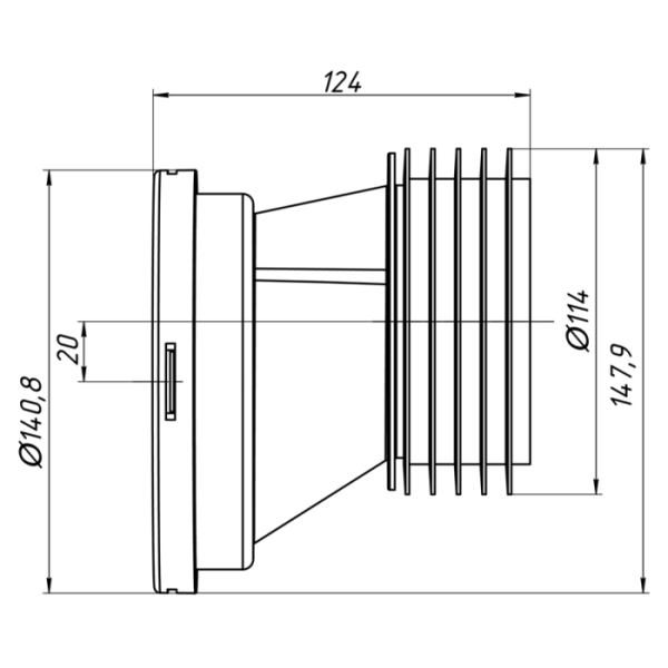 Труба фановая эксц 20 мм W0220 АНИ