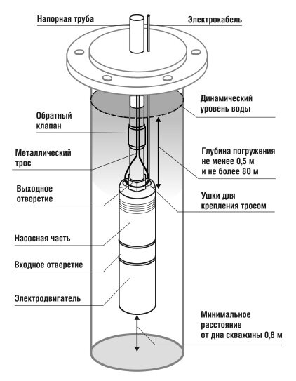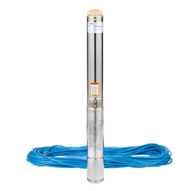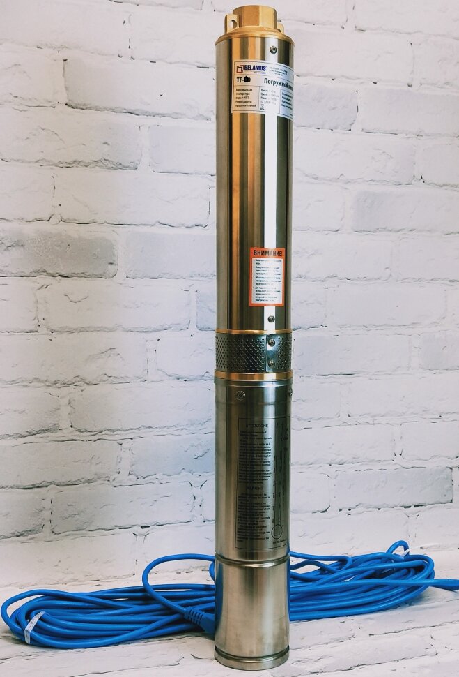 Диаметр насоса Belamos TF-80 – 4˝ дюйма (98 мм), максимальный напор столба воды 80 метров, кабель питания с вилкой 50 метров