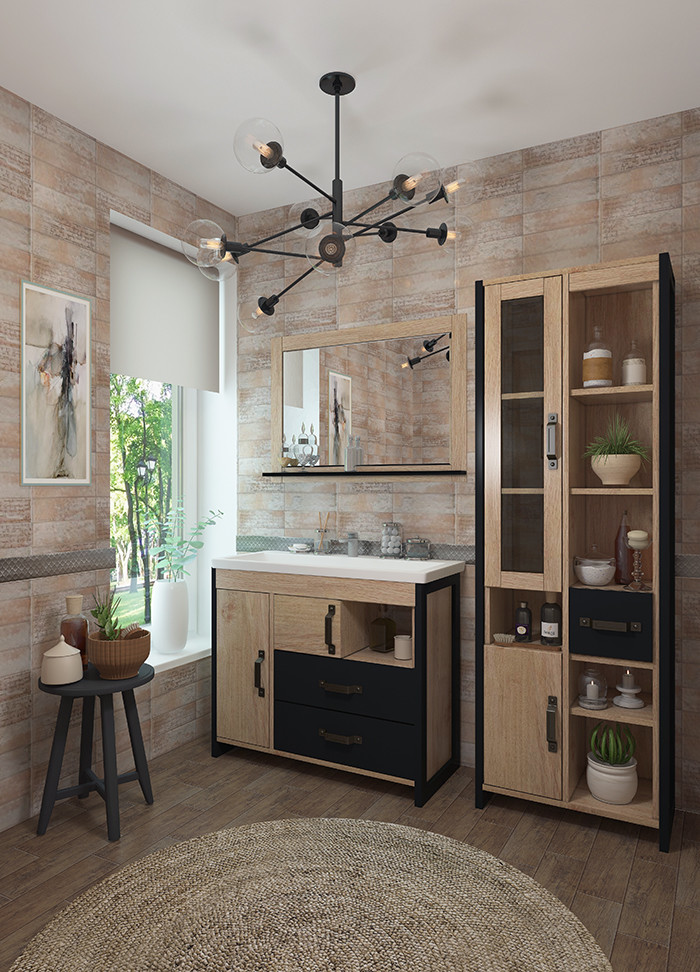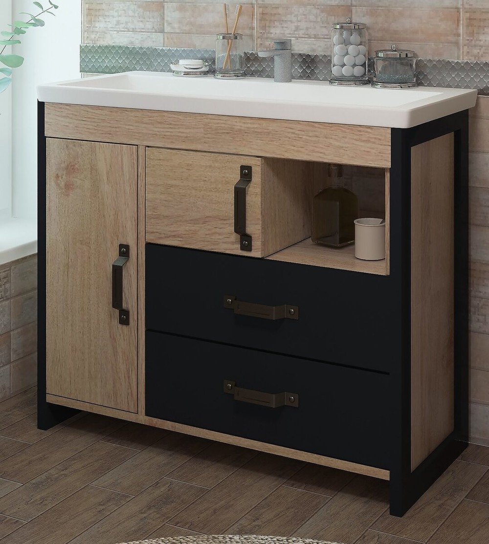 Эта напольная тумба сочетает в себе современный дизайн и практичность. Благородное сочетание цветов "Дуб золотой/Черный" придаст вашей ванной комнате элегантность и уют.