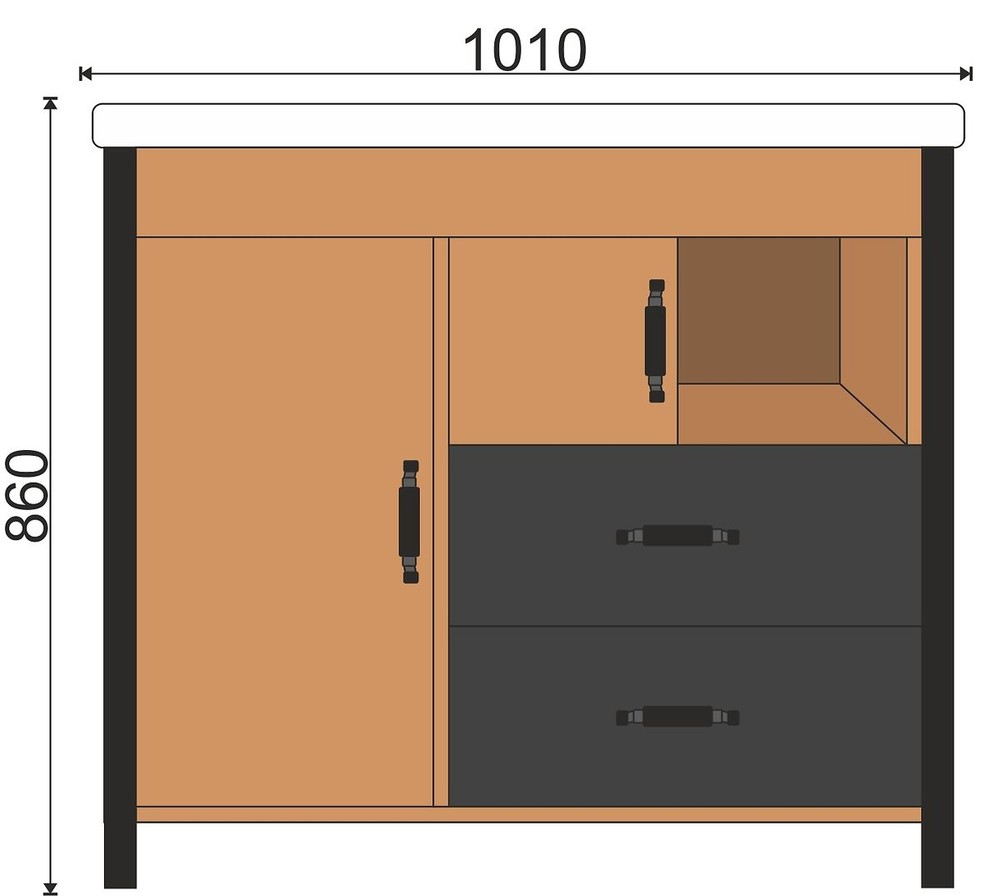 2 дверцы (для хранения более крупных предметов)