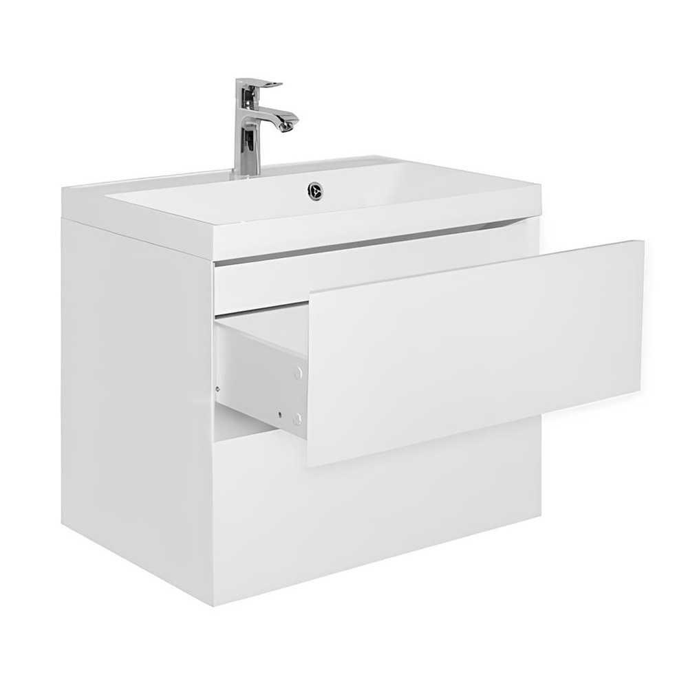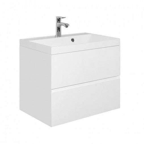 Тумба "МАНХЭТТЕН 80" подвесная 2ящ PLUS Белый Матовый с раковиной Marko Слим 80