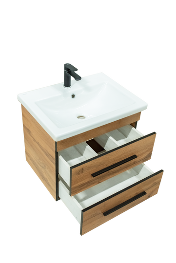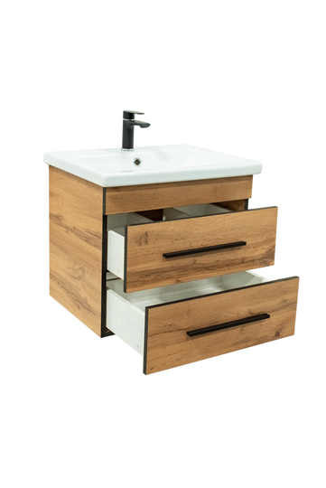 Тумба "МОНАКО 60" подвесная с раковиной COMO 60 в цвете "Дуб Вотан" — это практичная и стильная мебель для ванной комнаты, созданная для придания уникального характера вашему интерьеру.