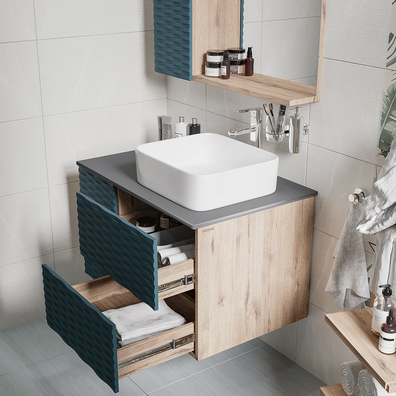 Представляем вашему вниманию стильную и функциональную подвесную тумбу "АЛЬБА 80" – идеальное решение для современной ванной комнаты!