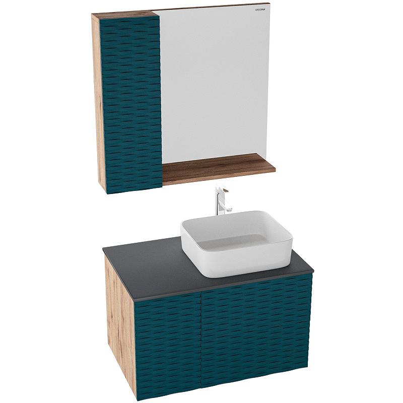 Тумба подвесная "АЛЬБА 80" с 2 ящ. веллингтон/бриз Grossman БЕЗ РАКОВИНЫ GR-3016/Олимпия-56