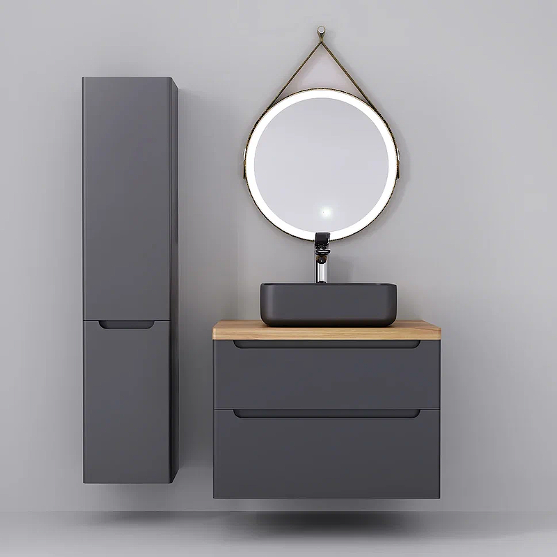 умба "Wood 80" подвесная в сером исполнении – это элегантное и функциональное решение для современной ванной комнаты. Сочетание матовой поверхности цвета антрацит и светлой деревянной столешницы "Wood 80" создает стильный контраст, который подчеркнет индивидуальность вашего интерьера.