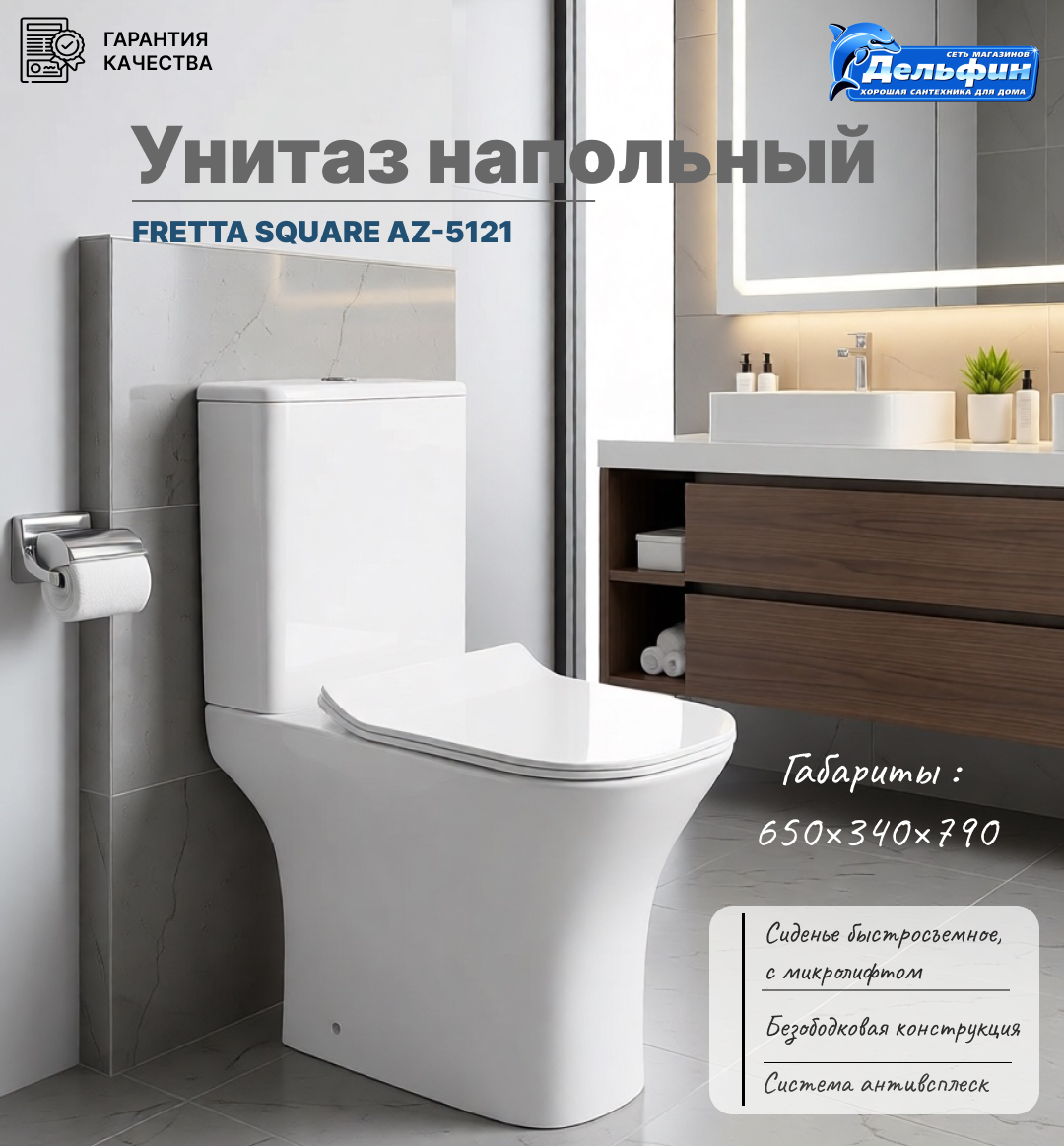 FRETTA SQUARE AZ-5121 унитаз-компакт безободковый + сиденье микролифт
