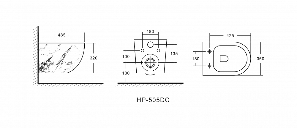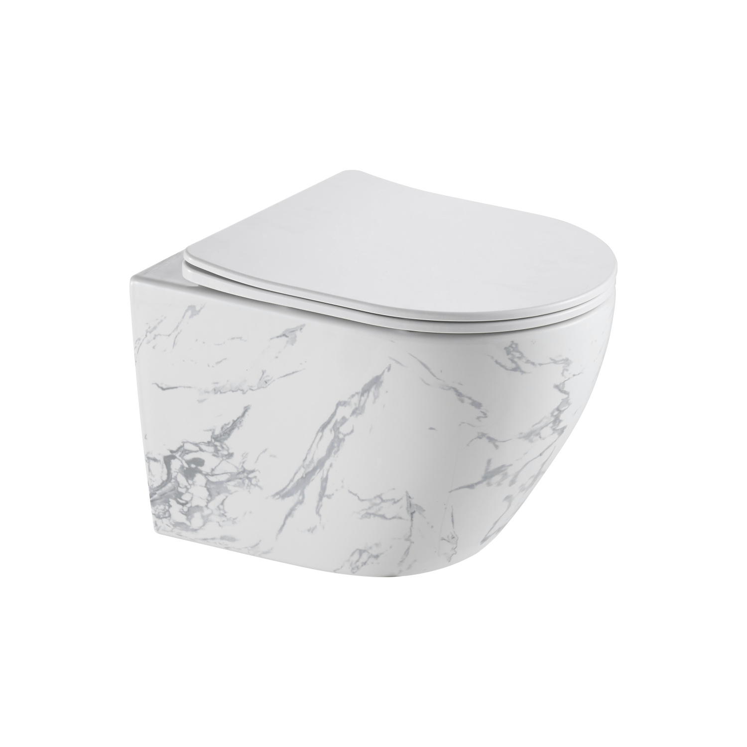 Унитаз подвесной K505MD безободковый, сиденье тонкое ДП, БЕЛЫЙ МРАМОР