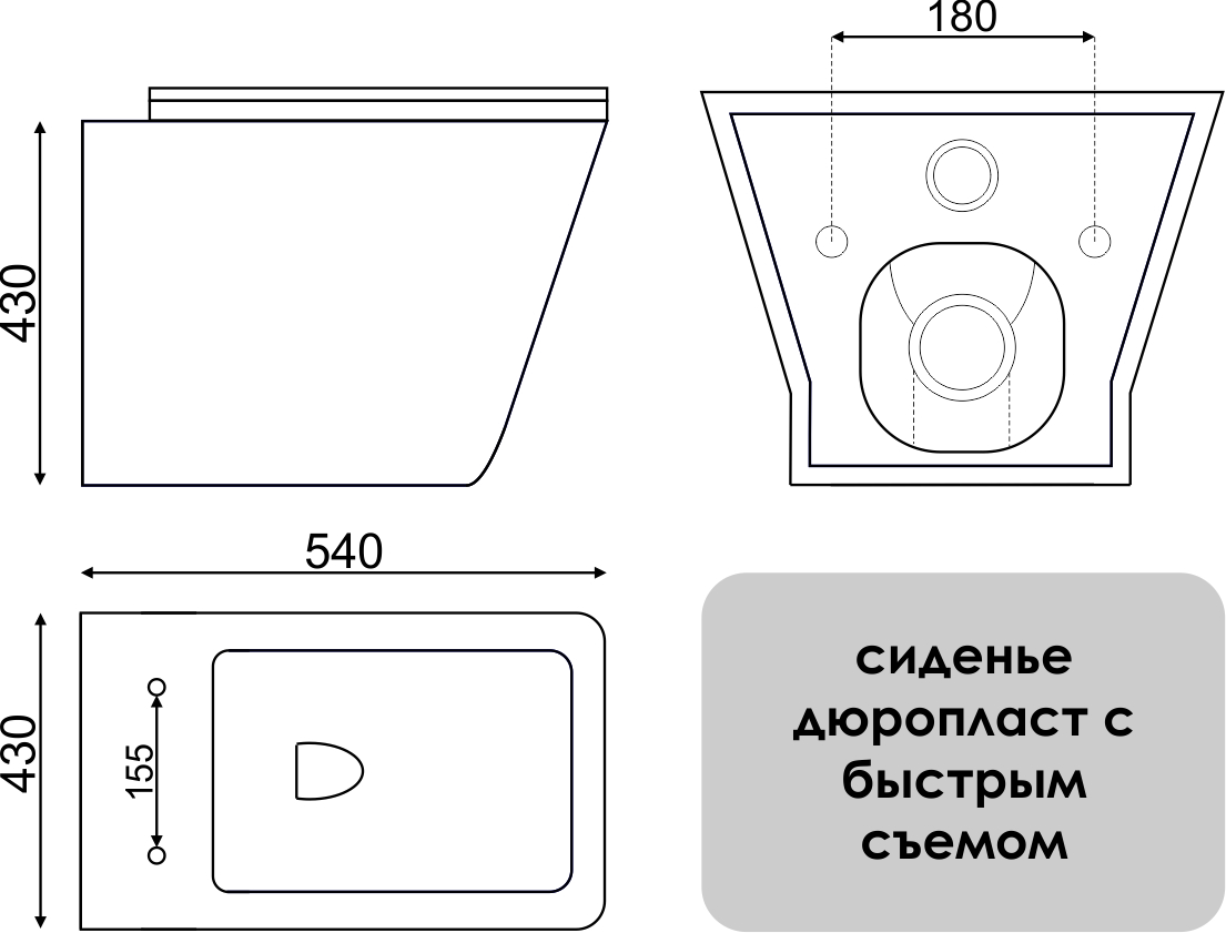 Унитаз подвесной SM9310 безободковый, сиденье тонкое ДП