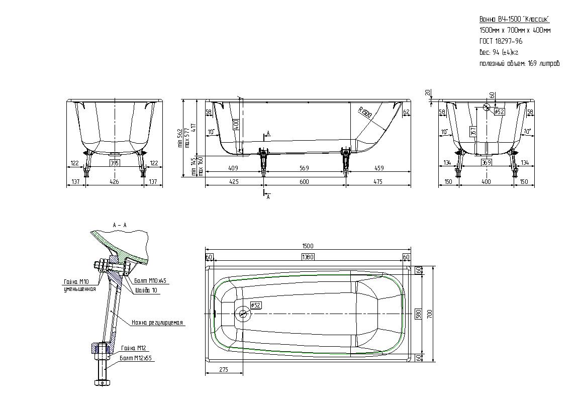 Материал ванны - чугун