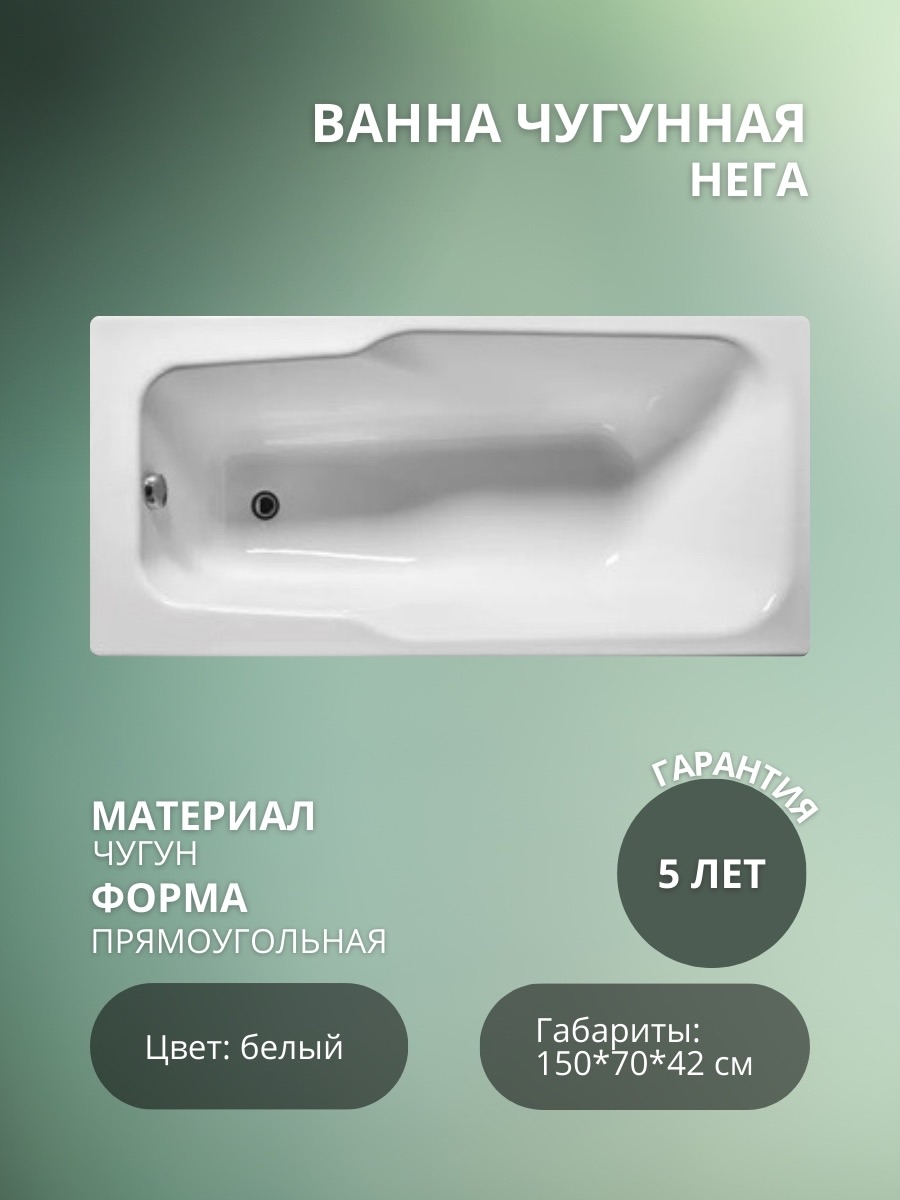Ванна чугунная «Нега» независимо от наличия дополнительных опций реализуется только в категории качества «Универсал».