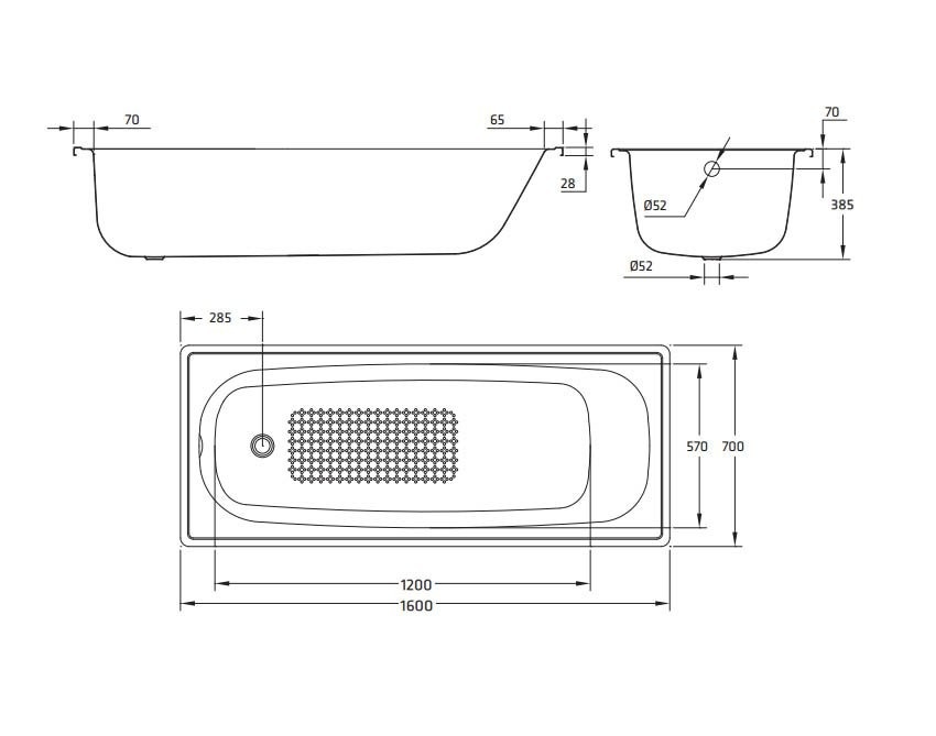 Эмалированная прямоугольная стальная ванна имеет прочное эмалевое покрытие устойчивое к ударам, мелким царапинам и химическим воздействиям.Характеристики