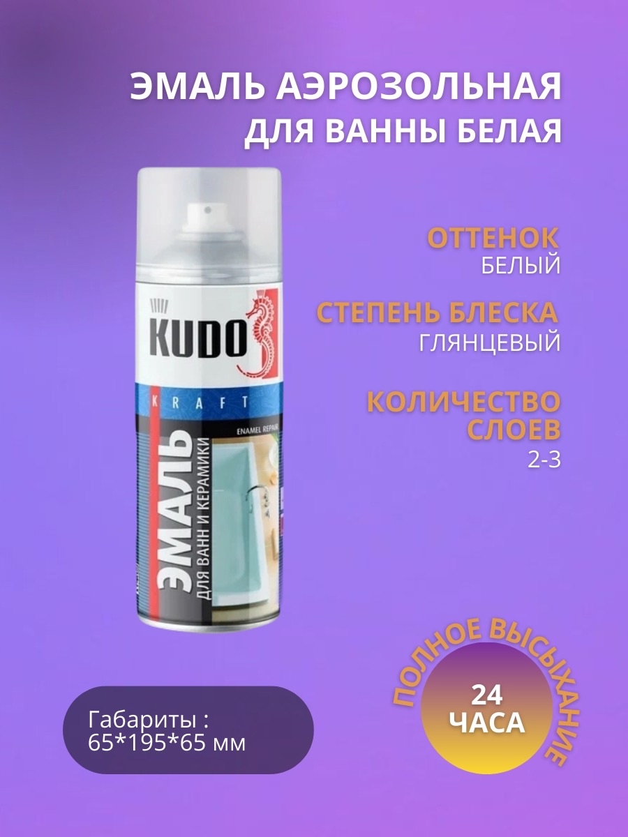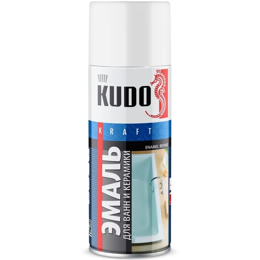 Эмаль для ванн KUDO белая KU-1301 используется для косметического ремонтного окрашивания эмалированных ванн и керамической плитки. Благодаря аэрозольному распылению продукт легко наносится на труднодоступные места.