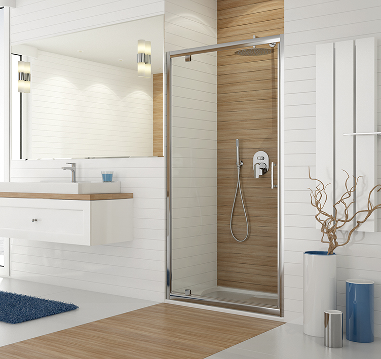 Распашные двери DJ/TX5 исполненные из безопасного стекла толщиной 5 мм используют поворотный механизм, который облегчает открытие в маленьких ванных комнатах.