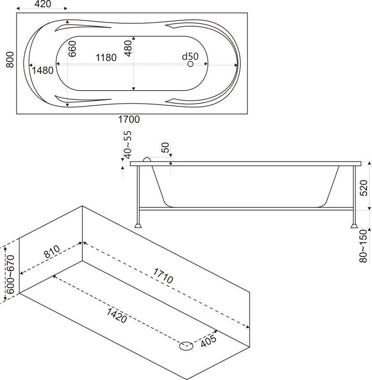 Длина 170 Ширина 80 Высота 60 Глубина 46 Цвет Белый Ориентация Отдельностоящая Форма Прямоугольная Гарантия 10 Объем 225 -