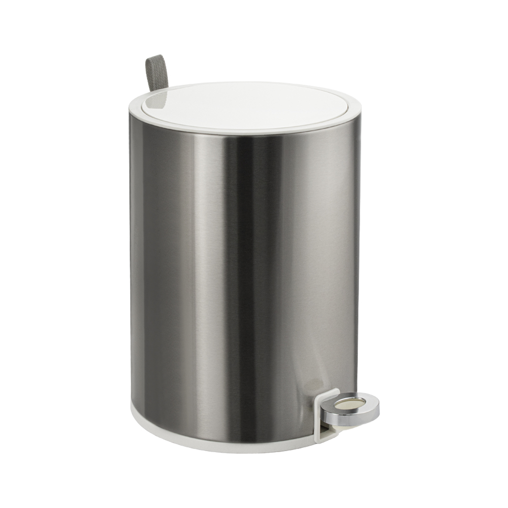 Ведро 5555 круглое, ЕВРОПА, пневматика, ультратонкая Белая крышка, из мат.нерж. стали, 5л, вывод