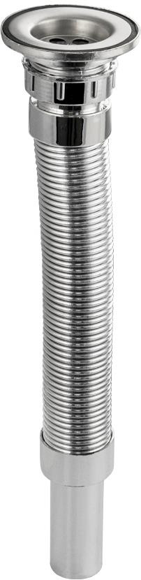 Гофросифон с нержавеющей решеткой, из высокопрочного пластика АБС, хромированный , предназначена для слива воды из мойки или раковины. Он герметично соединяет раковину с канализационной сетью Гофрированный сифон блокирует неприятные запахи из канализации. В трубе всегда есть небольшое количество воды, которая и предотвращает появление неприятных запахов. Регулируемая длина гофры позволяет установить раковину на нужном расстоянии от канализации. Качественный водопровод — залог чистоты в ванной комнате. Диаметр присоединительного отверстия: 40 мм. Диаметр стока: 70 мм. Длина: 330-780 мм