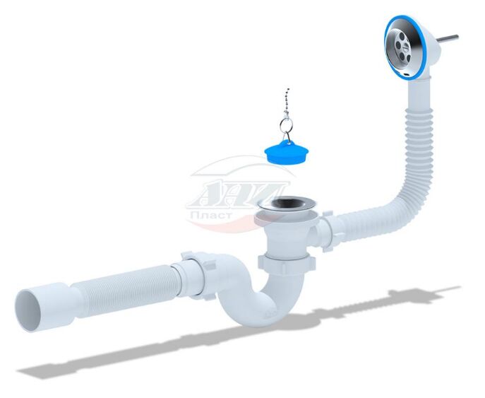 Сифон E155 АНИ пласт для ванны с решеткой слива D70мм комплектуется гибкой трубкой 40*50 мм для отвода в канализацию.