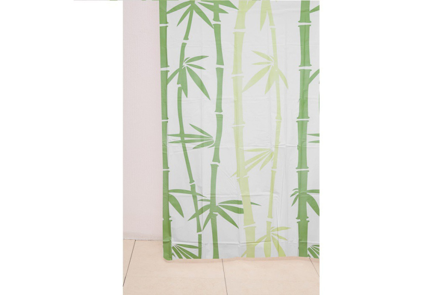 Штора для ванной выполнена из прочного ПВХ. Позволяет отгородить ванну или душ от остального помещения и защитить его от брызг. Имеет 12 колец, с помощью которых ее можно повесить на гардину. Не выцветает со временем, не портится под действием воды или пара.