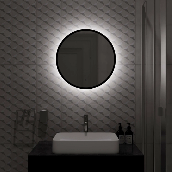 Зеркало MIXLINE "МОНАКО" D600 бесконтактн.сенс. светодиодн.подсв. Черная окантовка