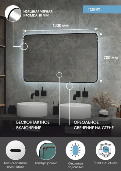 Зеркало Torry LED 1000*700 с бесконтактным сенсором и фоновой подсветкой ЗЛП1528