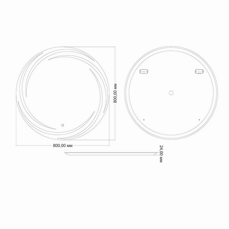 сенсорная кнопка. Имеет функцию плавного диммирования, с запоминанием последнего значения. Короткие касания светящейся области включают/выключают подсветку зеркала, длительное касание меняет яркость свечения.